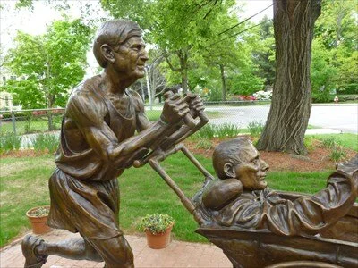 The father and son piece of Dick and Rick Hoyt was commissioned by John Hancock Financial Services and placed near the starting line of the Boston Marathon in Hopkinton, Massachusetts.