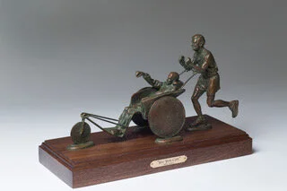 “Yes You Can” The dreams of our children are precious and very powerful. As a parent we don’t take these lightly. We will do anything to help them reach their goals. Now take that and amplify it thousands of times and you just might get a glimpse into the mind of Dick Hoyt. While creating this bronze I couldn’t help but think about my own children. What would I sacrifice for them? How far would I go? How much would I do to ensure that their hopes and dreams become possible? It’s immeasurable! The story of Dick and Rick Hoyt is one of dedication, love and determination and is beyond inspirational. It is historic and a story to tell for decades to come. So many times, we think we have gone the extra mile. Team Hoyt has surpassed that and beyond. Love your kids and hug your kids. We are here for such a short time. It is our decision to get the most out of our lives. So, reach, attain and give back and if anyone asks, your reply is “Yes You Can.”