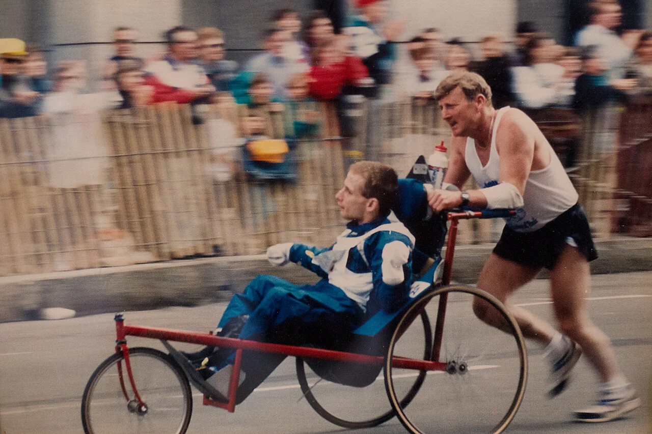 These are uncertain times and marathons are being temporarily put on hold. The artist Mike Tabor has created a smaller version of the life-size “Yes You Can” statue of Dick and Rick Hoyt that was installed in Hopkinton, MA. He feels now more than ever the importance of this inspirational piece. Mike Tabor Studio will be donating a portion of profits from the sales of “Yes You Can” to the Hoyt Foundation. The piece measures 14 ½ in length x 6 in wide x 9 ½ in tall and is in bronze with a walnut base. The pre-orders will sell for $1900 and will take around 9 weeks to fulfill. Orders can be placed at the following link. Please read the inspiration that goes with this inspirational bronze. Thank you for your continued support of Dick and Rick and all of those who benefit from the Hoyt Foundation.